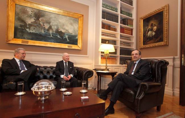 Και ο πρωθυπουργός Αντώνης Σαμαράς παρέστη στη συνάντηση του υπουργού Εξωτερικών Δημήτρη Αβραμόπουλου με τον ειδικό απεσταλμένο του γενικού γραμματέα του ΟΗΕ για το Σκοπιανό, Μάθιου Νίμιτς.